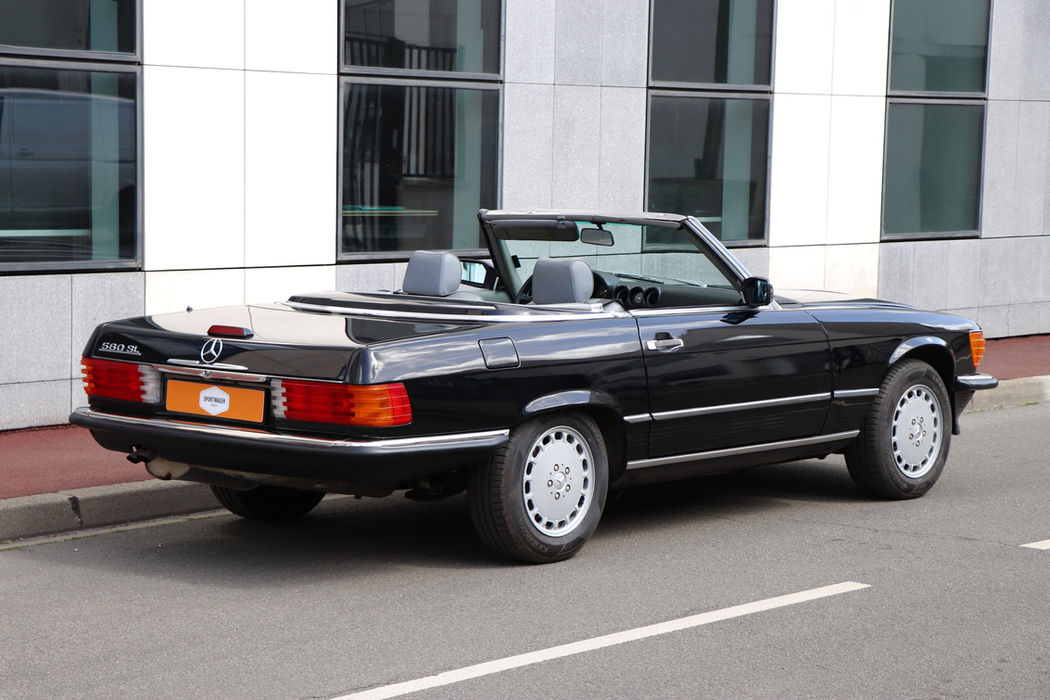 Très rare Mercedes 560 SL de 1988, livrée en configuration européenne.